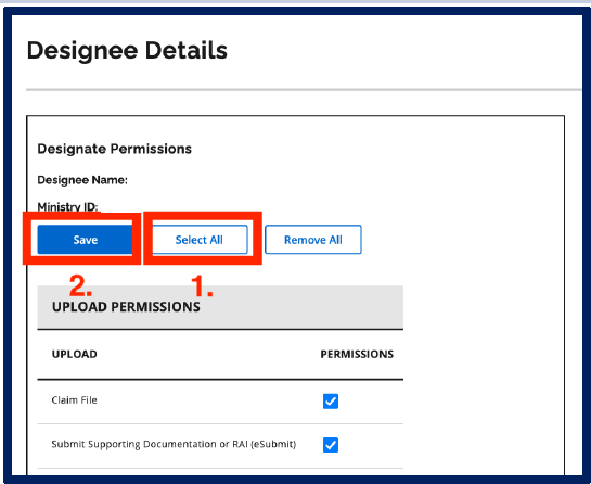 Step 8: You now need to give us permission to submit claims on your behalf. Select the "MCEDT Service (Upload/Download)" option under "List of Service Delegations for Designee".
